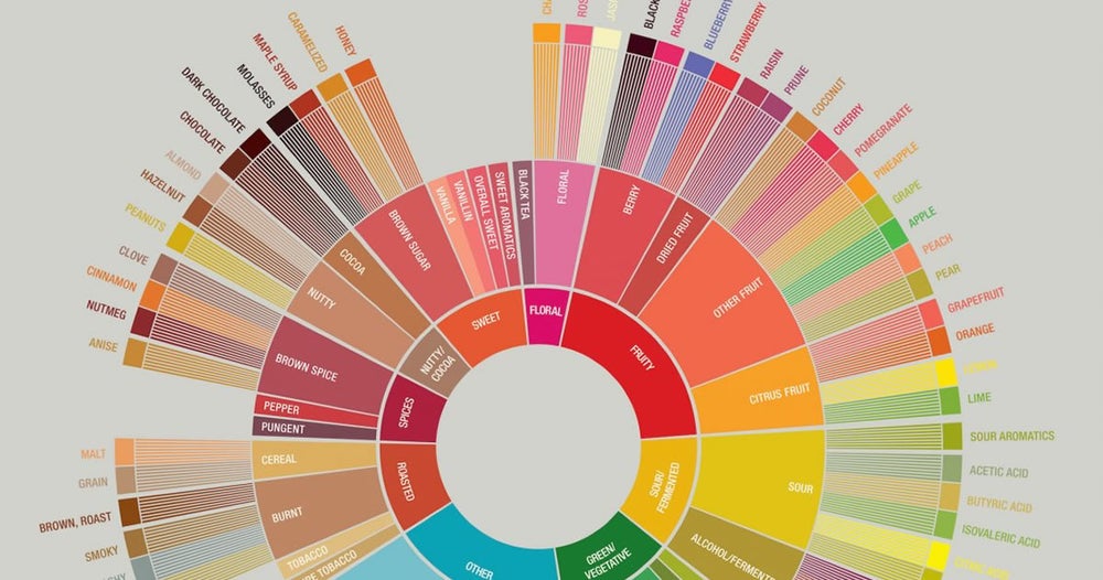 Enter any one of the innumerable cupping labs across the world and, besides the requisite sample roasters, towering stacks of cups and shiny spoons you’ll probably find another similarity. It might take you a second to notice it, hanging inconspicuously on most of those rooms’ walls, blending into the background. But, eventually, the tastefully muted colors of the coffee flavor wheel will catch your eye and, taking a step closer to read the fine print, you’ll see tiers of descriptions gracefully parceled into tiny pie-slices.
